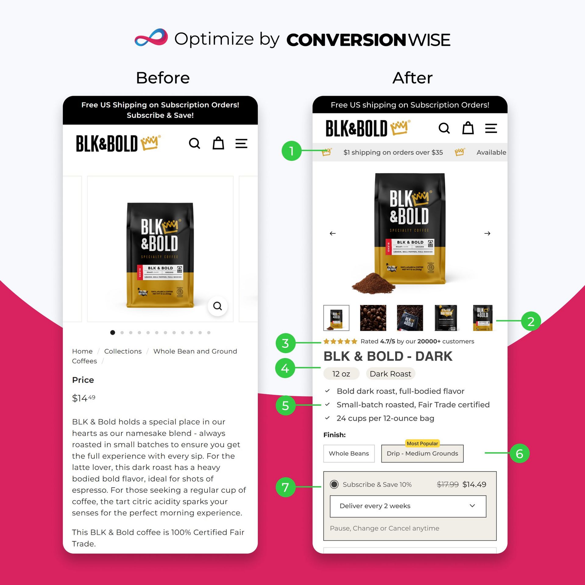 Value proposition clarified ("Bold coffee. Bigger purpose.")